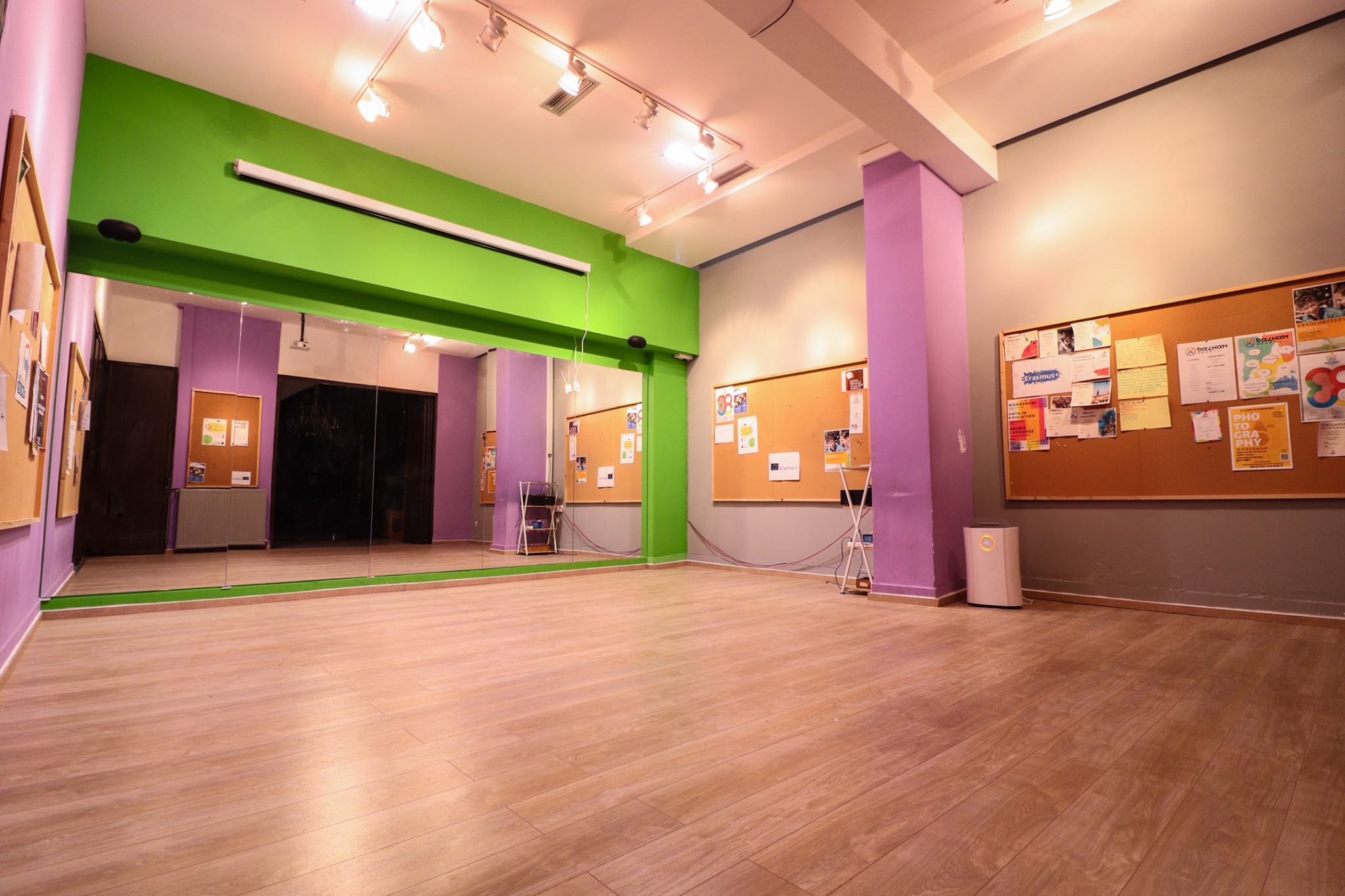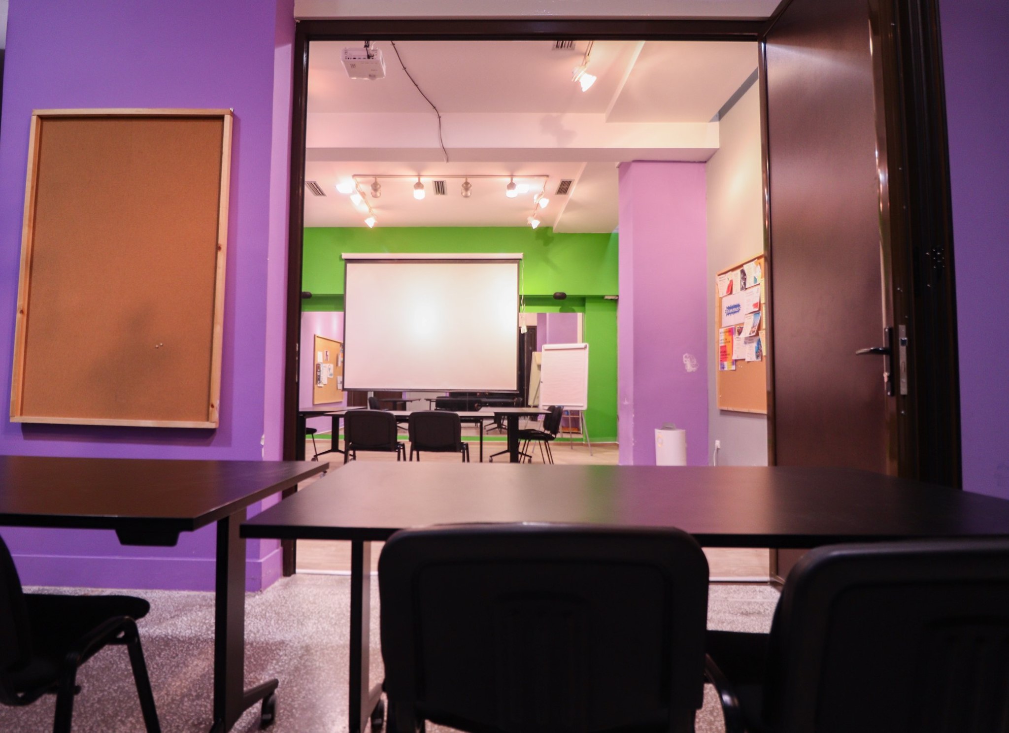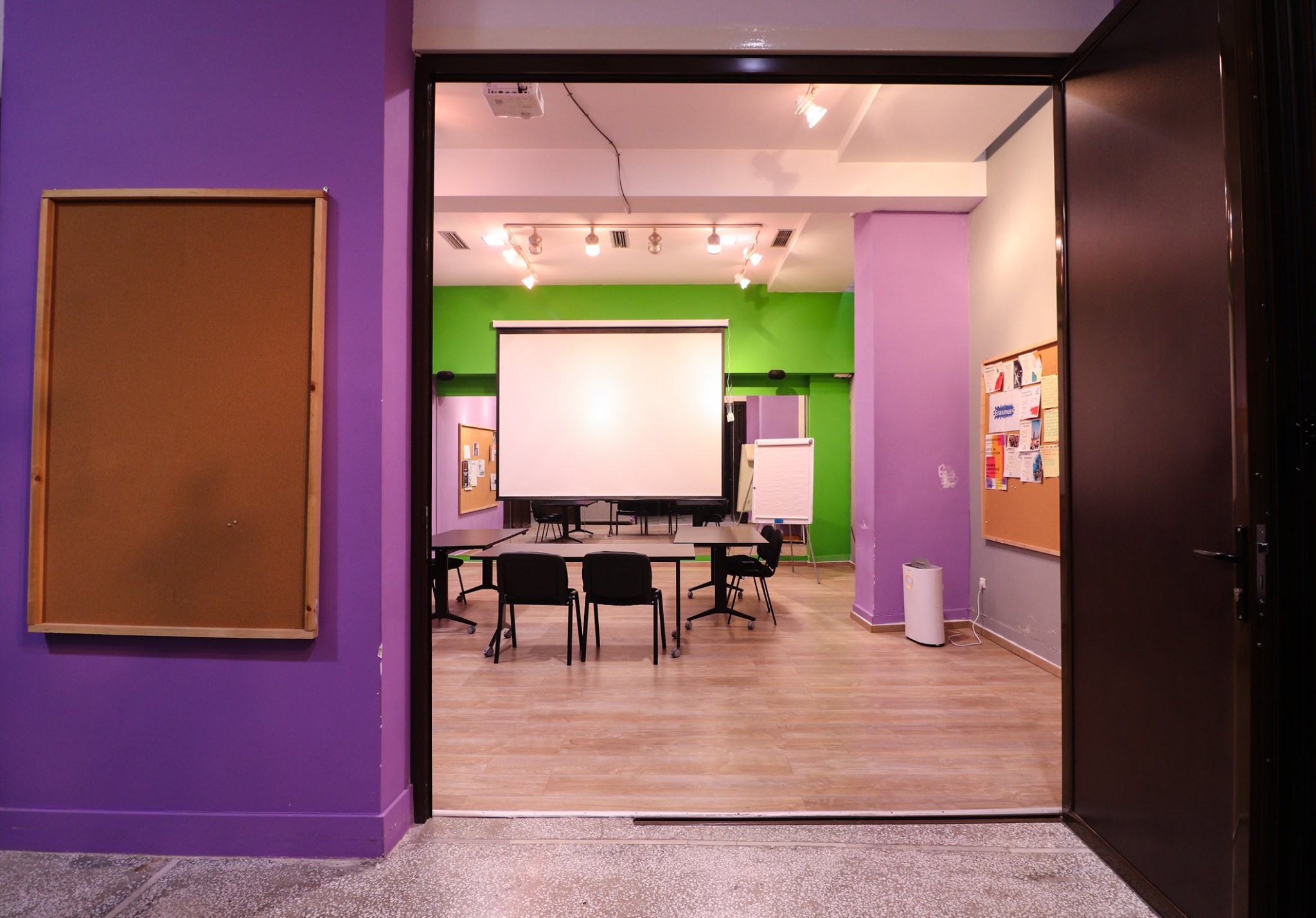 Το κόστος ενοικίασης για τη μωβ και πράσινη αίθουσα ταυτόχρονα είναι 21€/ώρα + ΦΠΑ. Σαββατοκύριακα και αργίες +2€/ώρα |