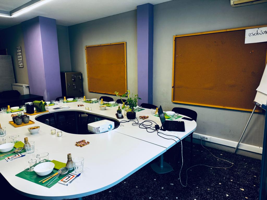 - Η πράσινη αίθουσα στο ισόγειο, με χωρητικότητα 15 ατόμων και πρόσβαση για άτομα με ειδικές ικανότητες.